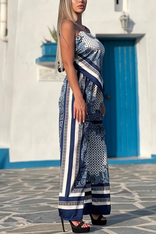 - The backless cami top with a tie knot enhances elegance and sophistication.