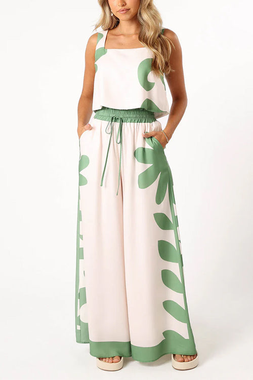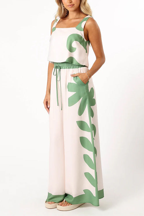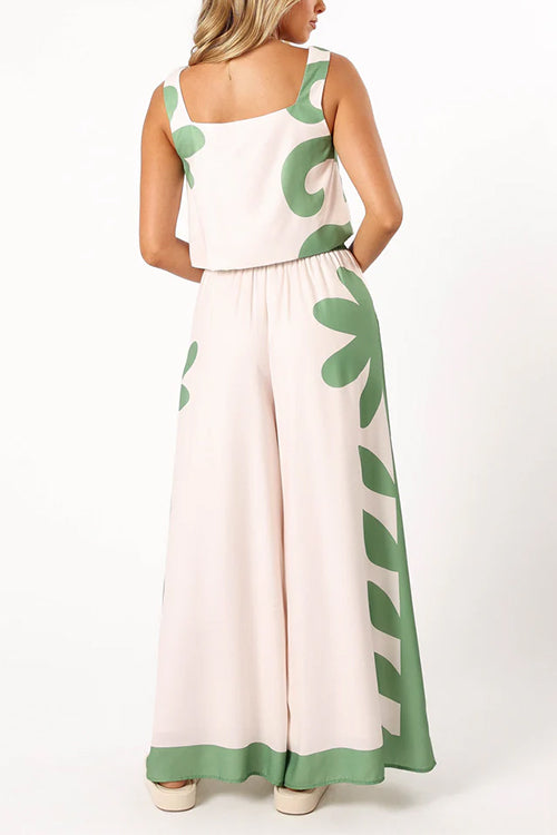 Introducing the Aunika Printed Crop Top & Wide Leg Pants Set, a chic ensemble designed for women who value both style and comfort. This fashionable set features a crop top with a distinctive square collar and complementary wide-leg pants, creating a trendy yet relaxed look suitable for various occasions.