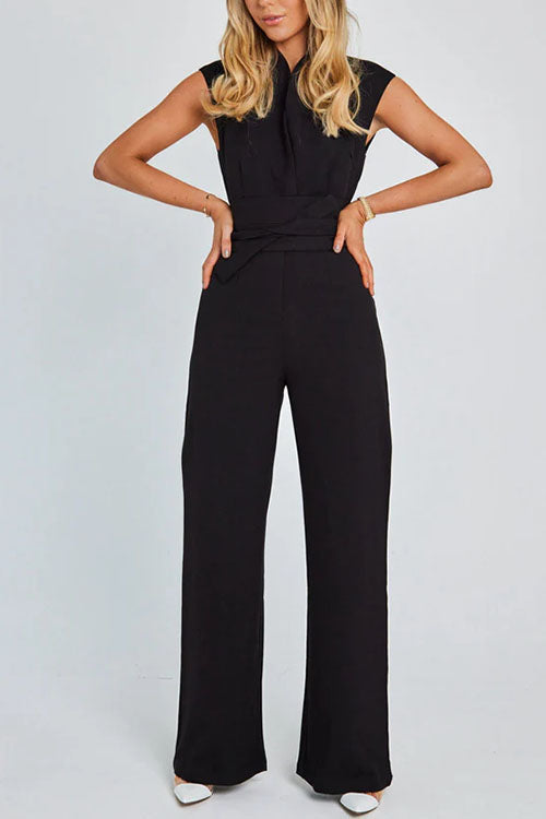 Ayodele - Cap Sleeves Tie Waist Wide Leg Jumpsuit