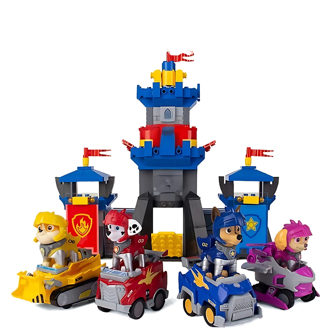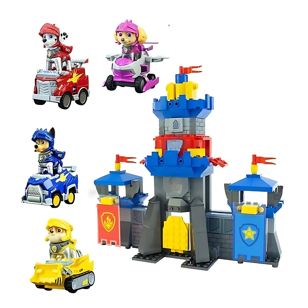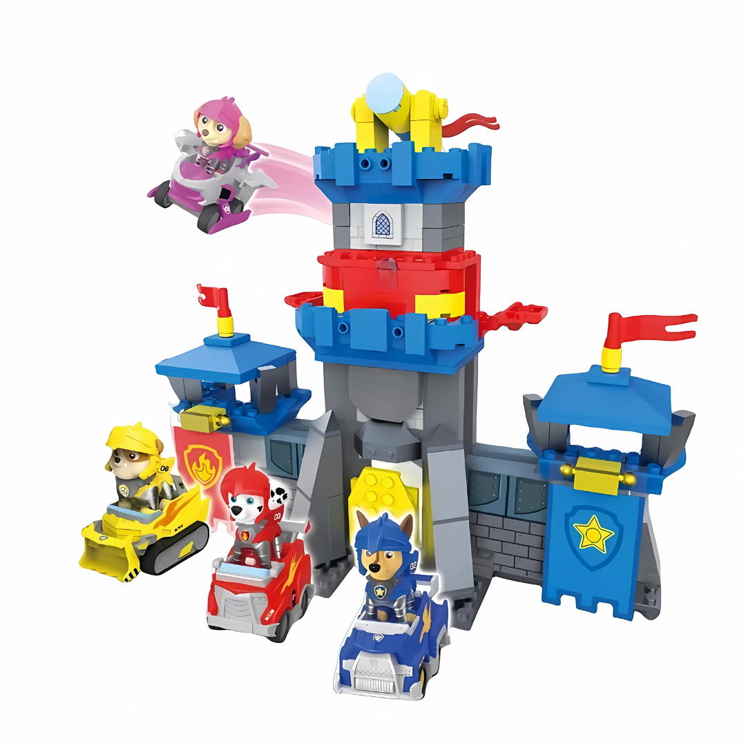 • Interactive design – Includes pullback cars, moving gates, and towers to spark imagination