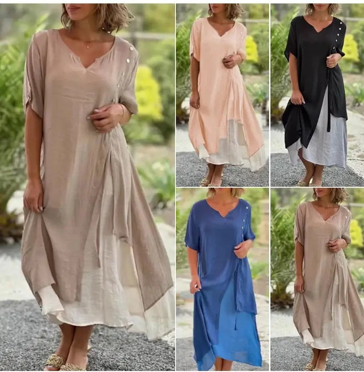 Loose and comfortable women's dress with a V-neck that keeps you stylish and comfortable!