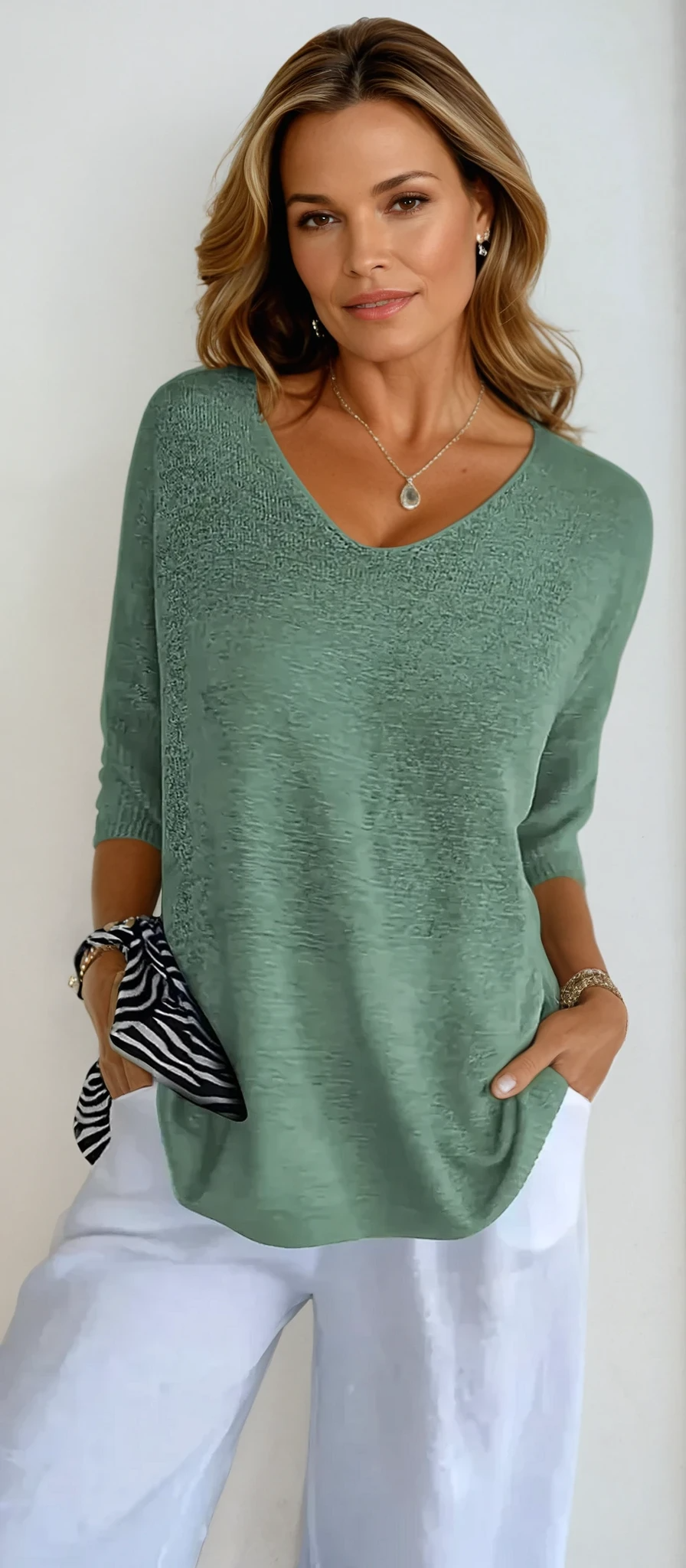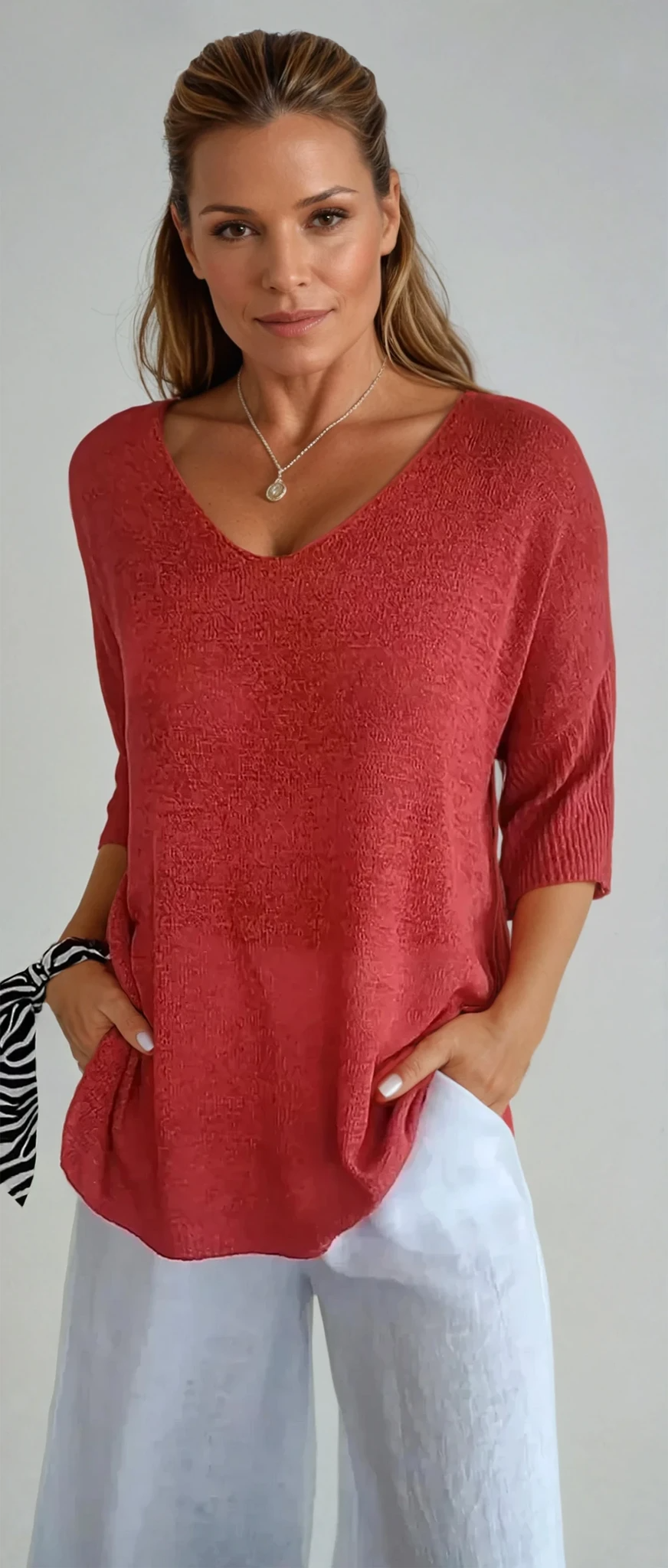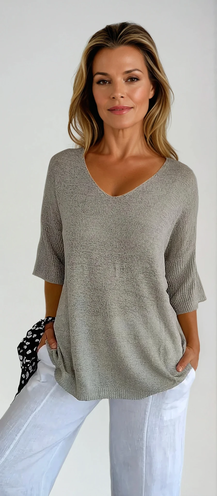 Jaja is the perfect balance of sleek style and everyday comfort. With its clean V-neckline and slimming silhouette, this top offers a polished look that moves easily from workdays to weekends. Lightweight and versatile, it's ideal for layering under blazers or wearing solo for a refined yet relaxed outfit.