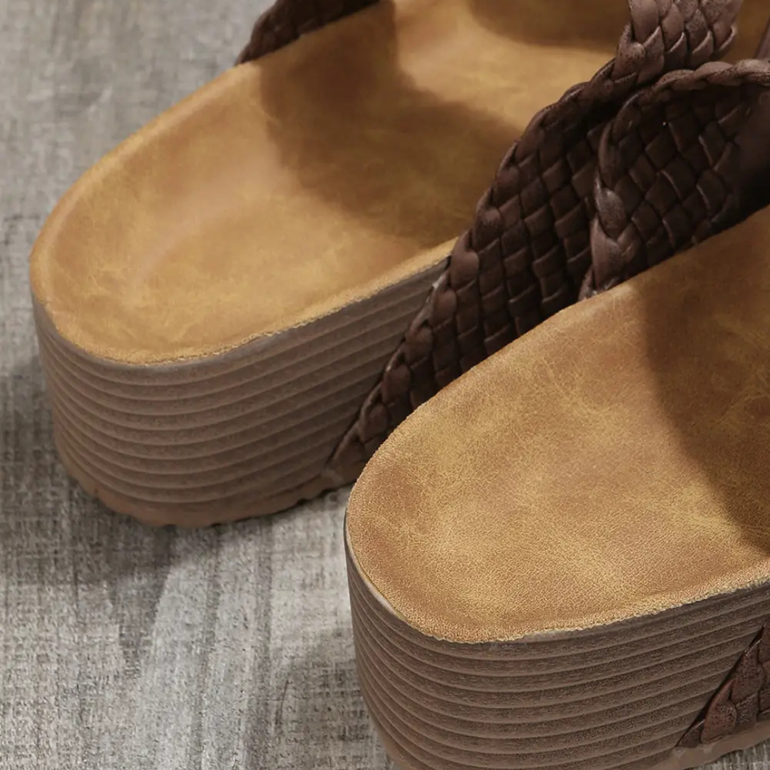 Step into elegance and comfort with our Nova – PU Leather Slip-On Sandals. Proudly crafted from high-quality PU leather and adorned with a unique braided design, these sandals are the epitome of sophistication, perfect for elevating any ensemble.
